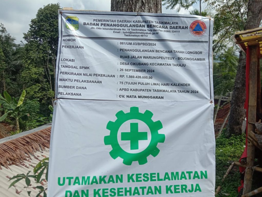 Pembangunan TPT Badan Jalan Tajur Di Desa Cikubang Kec.Taraju, Mejadi Program Prioritas Pemkab Tasikmalaya Tahun 2024Kab. Tasikmalaya, (kabardesanews.com) – Pemerintah Daerah Kabupaten Tasikmalaya melalui Badan Penanggulangan Bencana Daerah (BPBD) Kabupaten Tasikmalaya sedang melaksanakan kegiatan penanggulangan bencana tanah longsor ruas jalan Warungpeuteuy – Bohonggambir tepatnya di jalan raya kabupaten Desa Cikubang Kecamatan Taraju, Senin (07/10/2024).Ratusan bronjong kawat telah disiapkan dan mulai dipasangkan untuk memperkuat badan jalan yang beberapa bulan kebelakang terjadi longsor di jalan Tajur Desa Cikubang Kecamatan Taraju dan penanggulangan bencana ini didanai APBD Kabupaten Tasikmalaya tahun 2024.Pelaksana kegiatan Jana Sujana, menegaskan, ” Alhamdulillah dalam pekerjaan tidak ada kendala apapun, pendistribusian batu atau matrial lainnya berjalan lancar, alat berat pun sudah ada dilokasi dan sudah beroperasi, pekerja yang terlibat dalam pembangunan TPT semuanya berbagi tugas masing-masing, “tegasnya.Dengan pembangunan Tanggul Penahan Ranah (TPT) jalan raya tajur menggunakan bronjong kawat diharapkan nantinya dapat meminimalisir terjadi ancaman longsor lagi, pembangunan disepanjang jalan raya Kabupaten Tasikmalaya tepatnya di Desa Cikubang ini menjadi program prioritas Pemerintah Daerah Kabupaten Tasikmalaya pada tahun 2024, “tambahnya.